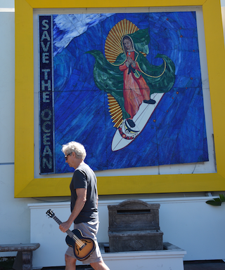 I live in Encinitas, California USA, a small beach town in north San Diego County. This photo is of me in front of our town's iconic glass mosaic. I wrote a song about it. Maybe someday I will record it so you can hear it.